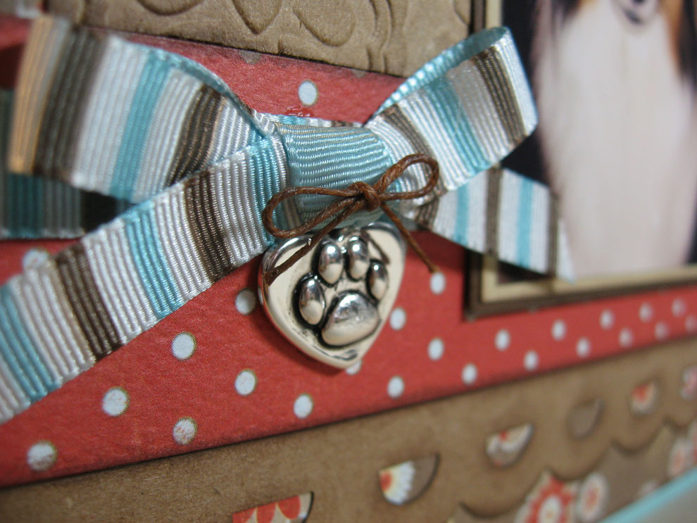 I really wanted to incorporate some dog stamping in here somewhere, but didn't have the right stamp set for it. I envisioned a background of silhouetted stamped dogs rather than the pattern paper you see here. But alas, that didn't work out. You'll see in a minute.
